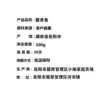 屈原管理区小灿家庭农场谷糠烟熏腊青鱼500g