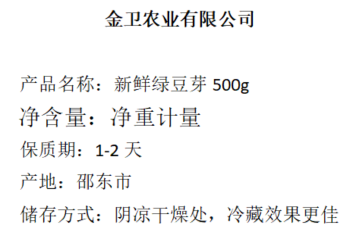 邵东市仓新鲜绿豆芽500g