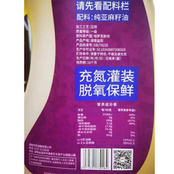 益阳高新区克明油脂低温冷榨亚麻籽油4L
