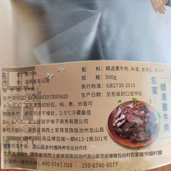 【熏制品】 龙山县农家自制烟熏腊黄牛肉500g