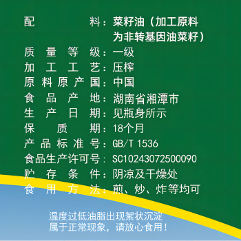 湘潭2仓自营 聚宝金昊纯菜籽油5L