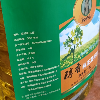 衡阳市誉湘龙姣籽味醇香纯正菜籽油10L