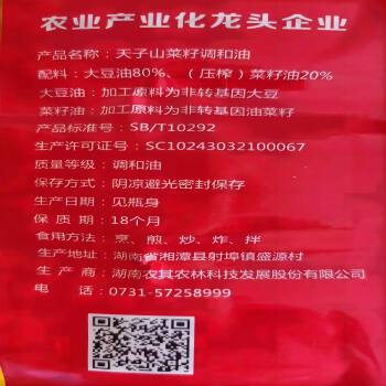 湘潭县 天子山非转基因菜籽调和油 20L/桶