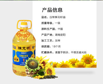 益阳高新区陈克明压榨葵花籽油 5L