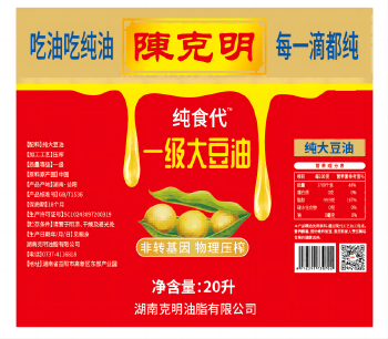 益阳高新区陈克明一级大豆油 20L