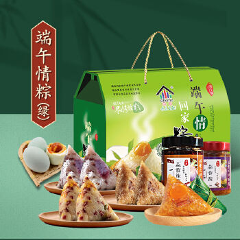 邵阳双清区紫珍花开端午情棕礼盒装粽子100g*8/皮蛋或咸蛋4个/辣酱150g*2