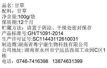 宁远县 康德佳 正品 精选甘草 姜汤 泡水 泡茶 100g/袋