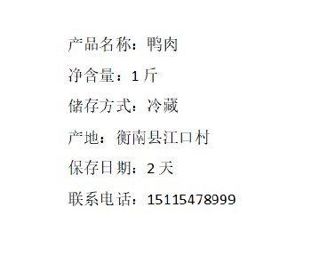 衡南县江口村鸭肉1斤