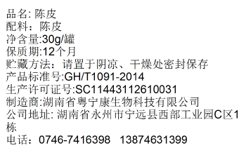 宁远县 康德佳 陈皮 十年老陈皮干 泡茶 泡水 精美罐装 30g/罐