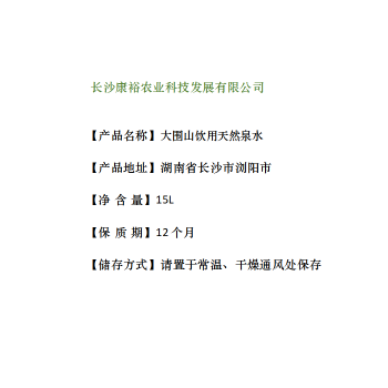 浏阳市大围山一次性桶装矿泉水15L