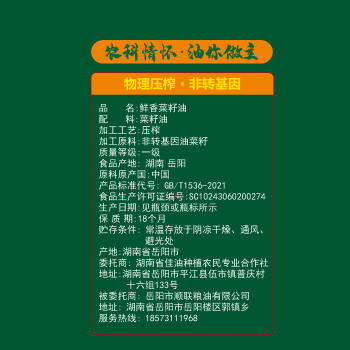 平江县 农科情 鲜香菜籽油 5L