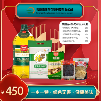耒阳仓 450元中秋大礼包(中粮福临门大米5kg*2包,长康绿态纯正菜籽油5L*2桶,华夏香菇风味挂面1kg *4包,金福元卤香干500g*10包,三蓝兴银耳70g*2包)