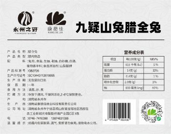 宁远县康德佳腊全兔 湖南宁远风味 菊花茶枯碎米慢火熏制而成