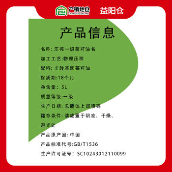 益阳仓 绿城源一级菜籽油 5L*4瓶