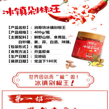 平江县润哥坊冰镇剁椒王辣椒酱 一件 (400g*15瓶)