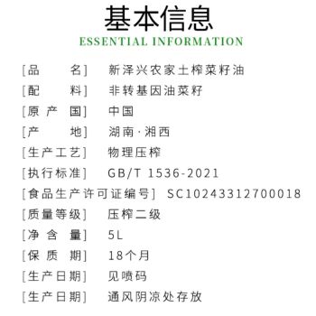 武冈新泽兴农家土榨菜籽油5L