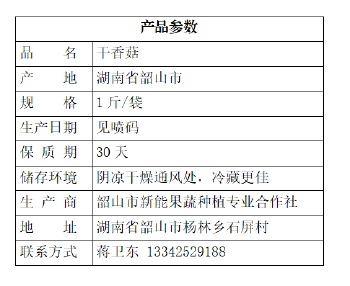 韶山新能果蔬 干香菇 1斤