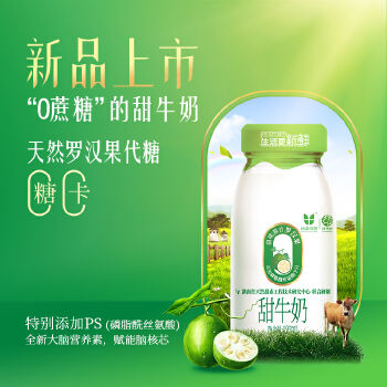100%生牛乳,甜味源自新鲜罗汉果,特别添加ps