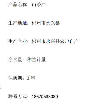 郴州市永兴县山茶油2.5kg