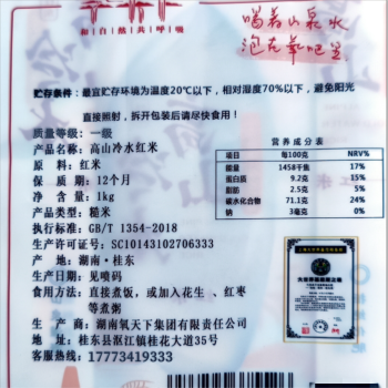 桂东氧天下高山冷水红米1kg/袋