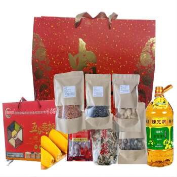 宁乡中国年农家好味礼盒鹿茸菇150g+香菇150g+精品云耳150g+椴木银耳100g+红枣150g+虫草花150g+鲜食有机玉米200g*8+低芥酸菜籽油5L+五谷杂粮有机礼盒1*3.98kg
