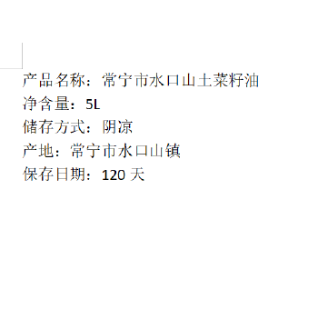 常宁市水口山土菜籽油5L/桶