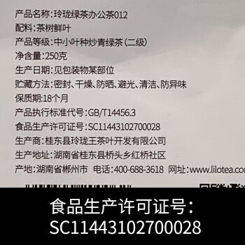 桂东县玲珑王办公绿茶012 250g