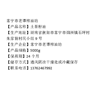 常宁市老谭榨油坊衡上宴土茶籽油5000g