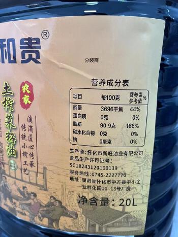 中方县福和贵土榨菜籽油20L