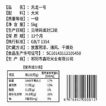 永州市祁阳县龚家坪镇天龙一号大米5kg