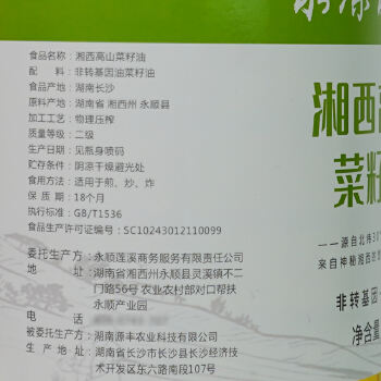 永顺县永康永顺原香5L二级压榨菜籽油