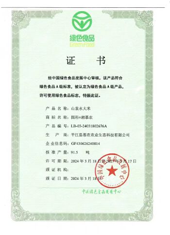 国家认证绿色有机高山大米。