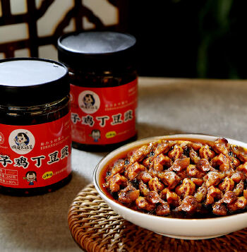 辣子鸡丁豆豉,特色传统菜肴,经精心改良后其口味更富有特色,成菜色泽棕红油亮,质地酥软,麻辣味浓。咸鲜醇香,略带回甜,是一款食者啖之难忘的下饭菜。
