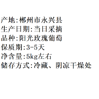 永兴县 新鲜阳光玫瑰葡萄15元/斤(满30斤12元/斤)