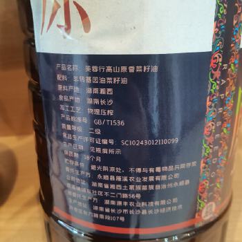 永顺县芙蓉行高山原香菜籽油5L