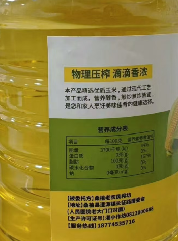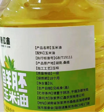 桑植县一级压榨玉米油5L/桶包邮