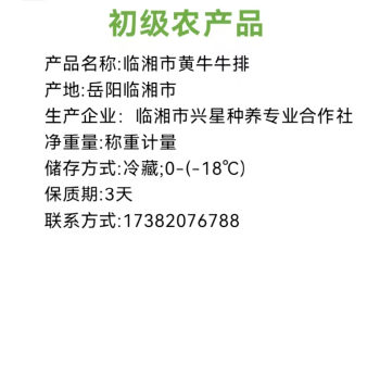 临湘市黄牛牛排500g