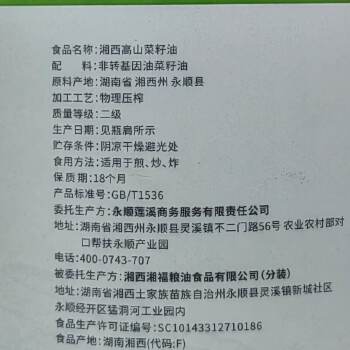 永康永顺湘西菜籽油原香型5L