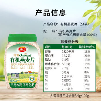 湖南南山有机燕麦片1.0千克/罐