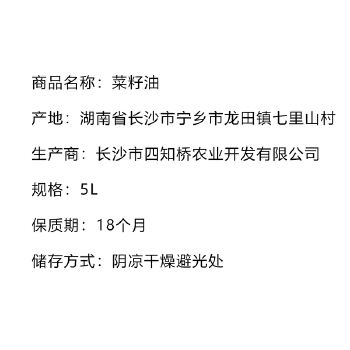 宁乡市 龙田镇 四知桥 菜籽油 5L