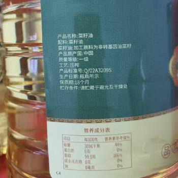 平江县中粮荆楚花非转基因压榨菜籽油5L/瓶