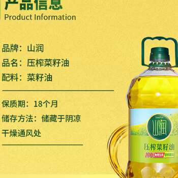 平江县山润压榨菜籽油5L非转基因家用菜籽油