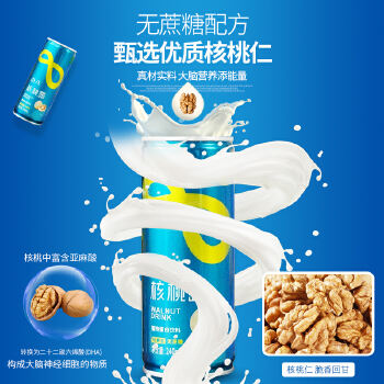 山西阳泉盂县点八核桃露绿标无蔗糖款营养植物蛋白学生中老年早餐240ml*18罐