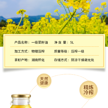 怀化市侗歌清香一级菜籽油5L