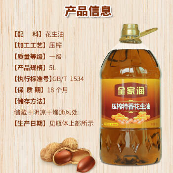 平江县山润全家润压榨特香花生油5L/桶