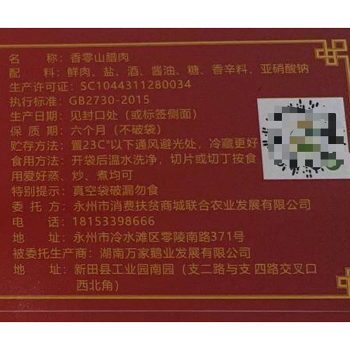 冷水滩区 香零山 农家腊肉500g/袋