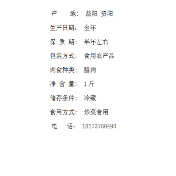 资阳湘益资腊肉1/斤