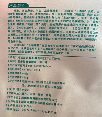 永顺县/毛坝云诗莓茶/一级/250克/袋