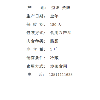 资阳 湘益资 腊肠子 1/斤