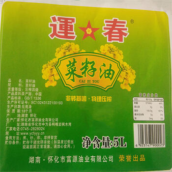 中方县运春菜籽油5L